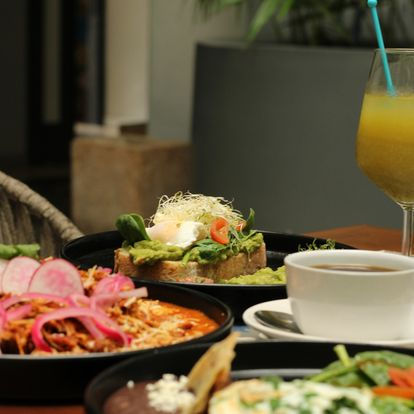 Terraza Piedra de Agua is a great dining spot located in the heart of Merida's historic center, within the elegant Piedra de Agua Hotel Boutique. Just steps away from the cathedral and main square, this restaurant is open from breakfast through to dinner. Start your day with a diverse breakfast selection, featuring eggs prepared to your liking, fluffy hotcakes, French toast, a healthy chicken sandwich, fresh vegetable wrap, avocado toast, and traditional chilaquiles. For a satisfying twist, try their enchiladas and tortas, all complemented by refreshing juices, smoothies, and coffee.